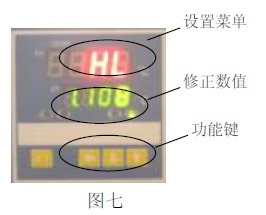 7.1.6 (見圖七)按“SET”鍵,PV屏出現(xiàn)“H L”,將“H L”修改為1.000,再回到工作狀態(tài);