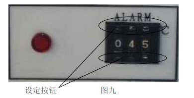 11.2 見圖九,用面板上超溫設定撥盤的+、— 按鈕進行設定所需限溫溫度。